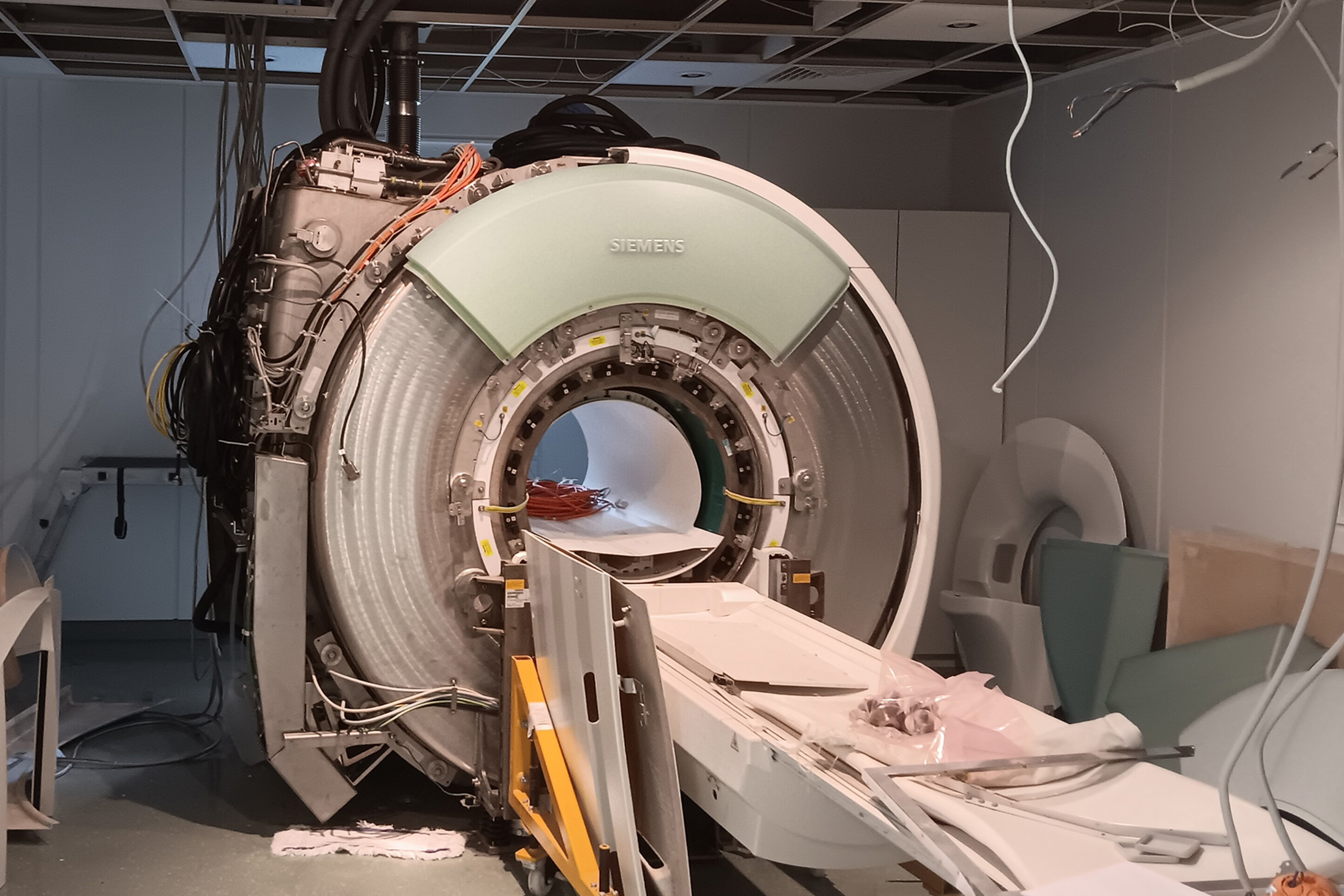 Beim Austausch eines MRT-Systems können neben dem Öffnen und Schließen der HF-Kabine auch der Bodenbelag, das Quenchrohr, die Filterplatte, die HF-Kabinenzugangstür bis hin zur kompletten Innenverkleidung der HF-Kabine angepasst oder ausgetauscht werden. In diesem Zuge wird in der Regel auch die Kabinenbeleuchtung auf effiziente und energiesparende LED-Beleuchtung umgestellt. Zusätzlich bieten wir für den Patientenkomfort die Integration von Decken- und Wandbildern sowie Monitor- und Beamersystemen an.
